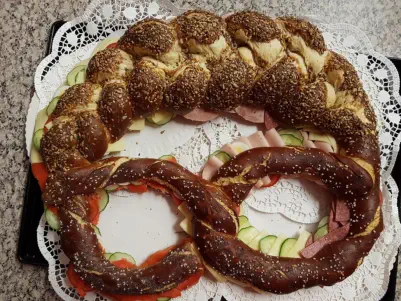 Extra Große PartybrezelFingerfood-Partybrötchen belegt nach ihren WünschenSüßes oder herzhaftes Partygebäck, z.B.•Party-Schinkencroissant•Party-Croissant•Party-Quiche•Party-Plunderteilchen•Party-Laugengebäck (Salz/Körner/Käse/Speck)Unser Sortiment können wir ihnen auch in folgenden Varianten anbieten:•100 % Dinkelmehl•VeganWir beraten Sie gerne ausführlich.Und alles kommt aus eigener Herstellung - Ihre Wünsche sind unsere Möglichkeiten.